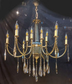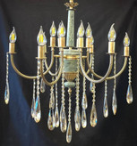 لوستر 6 شاخه 12 شعله برنجی برنزی سنگی با آویز در سه رنگ مختلف