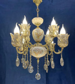 لوستر 4 شاخه 8 شعله برنجی برنزی سرامیکی لیلی مجنون با لاله و آویز