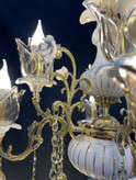 لوستر 4 شاخه 8 شعله برنجی برنزی سرامیکی خطی شاخک گلدار با لاله و آویز