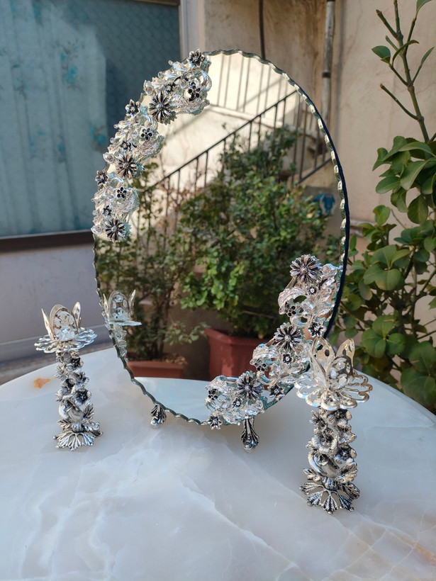 آیینه و شمعدان هفت سین و بله برون ، اینه گل آفتابگردان روکش نقره