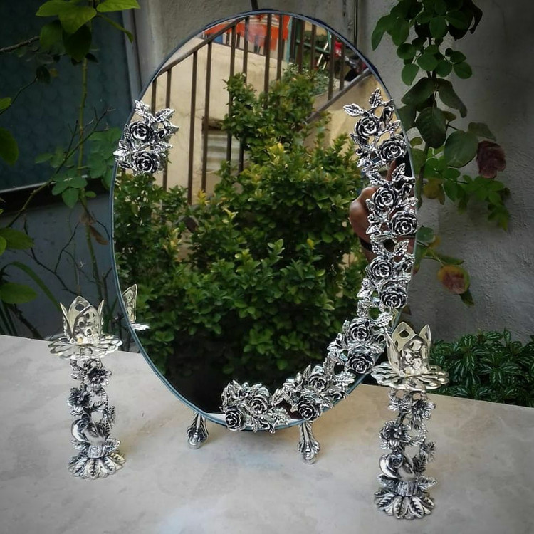 اندازه: سایز آیینه 32×22 , شمعدان 12 سانت