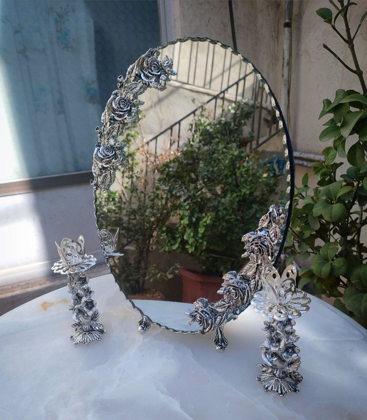 آینه و شمعدان هفت سین و بله برون ، گل رز بزرگ روکش نقره