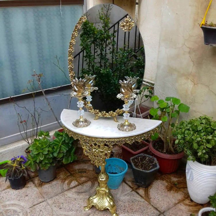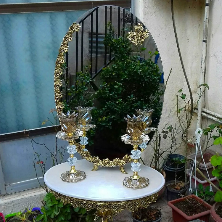 اندازه: سایز آیینه 70×50 , ارتفاع میز 70 ، شمعدان 35 سانت