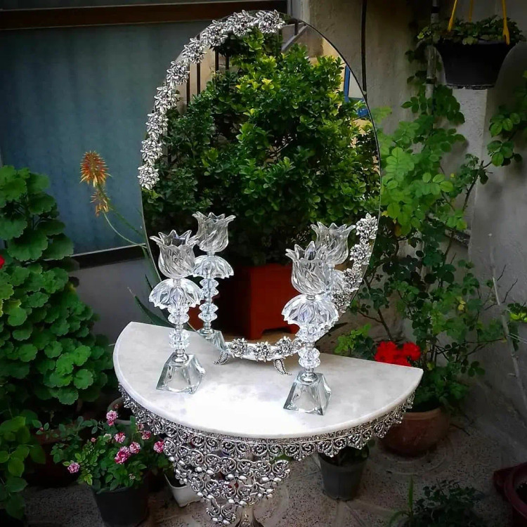 اینه و شمعدان عروس ، ایینه مدل گل برگی روکش نقره