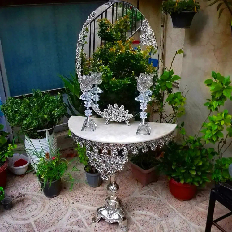 اندازهسایز آیینه ۷۰×۵۰ ، شمعدان ۳۵ سانت ، ارتفاع میز 70