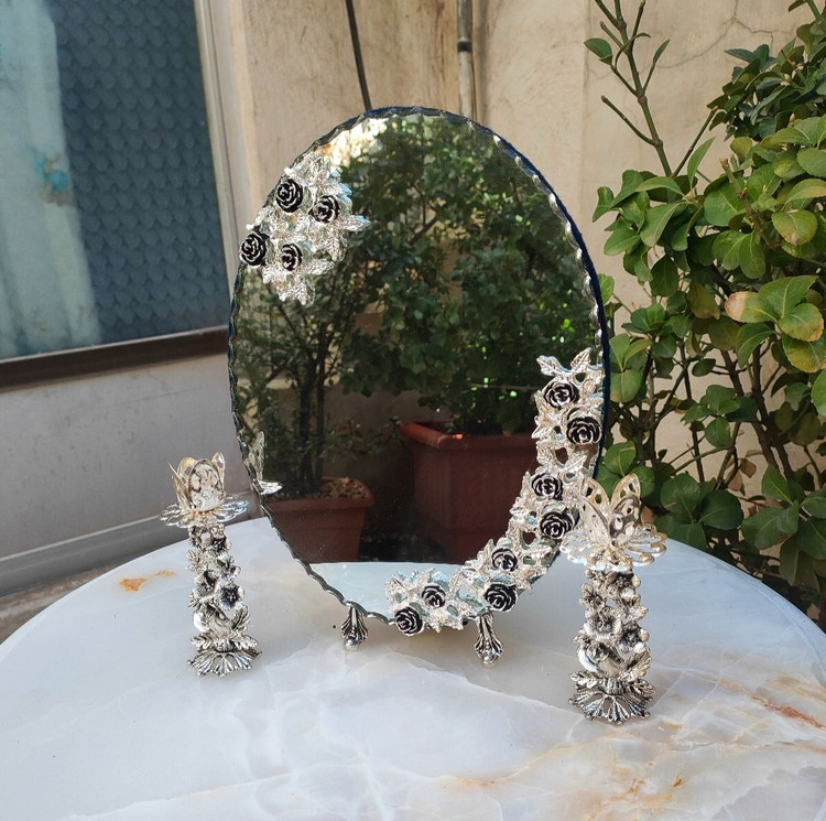 اندازه: سایز آیینه 29×20 ، شمعدان 12 سانت