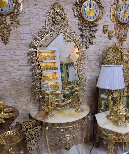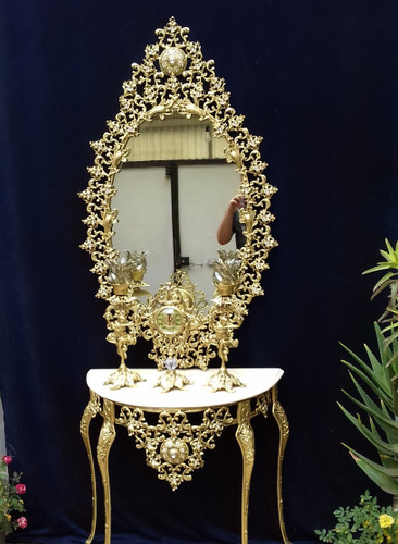 آینه و کنسول تمام برنزی برنجی با سنگ مرمر
