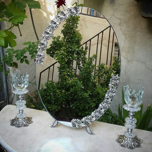 سرویس آینه و شمعدان و میز عروس ، آیینه مدل گل رز روکش نقره