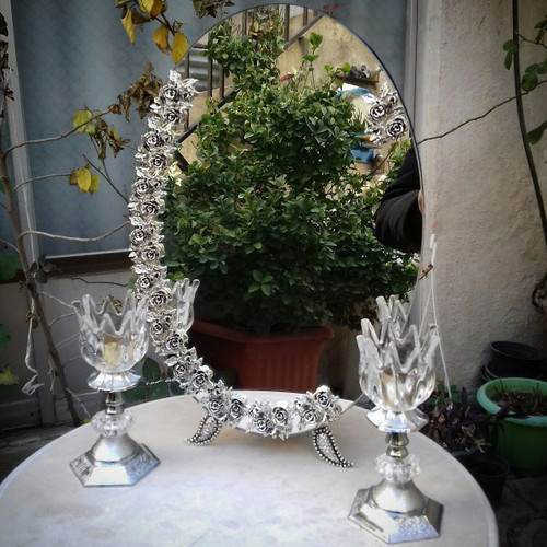 سرویس کامل آیینه و شمعدان و میز عروس ، اینه مدل گل رز روکش نقره