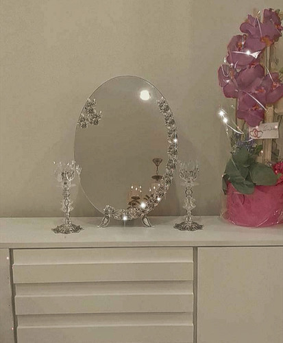 سرویس آینه و شمعدان و میز عروس ، آیینه مدل گل مینا روکش نقره
