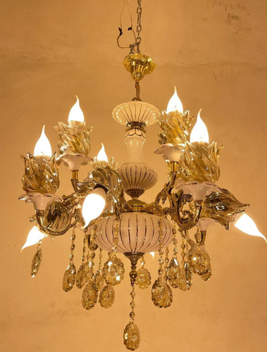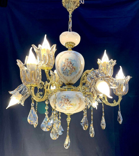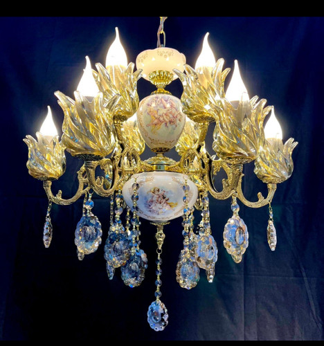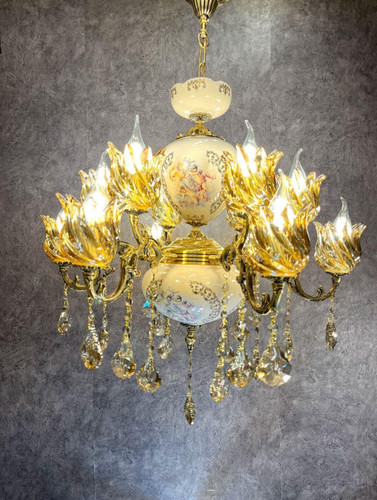 لوستر 8 شاخه 12 شعله برنجی برنزی سرامیکی لیلی مجنون مدل فرشته با لاله و آویز